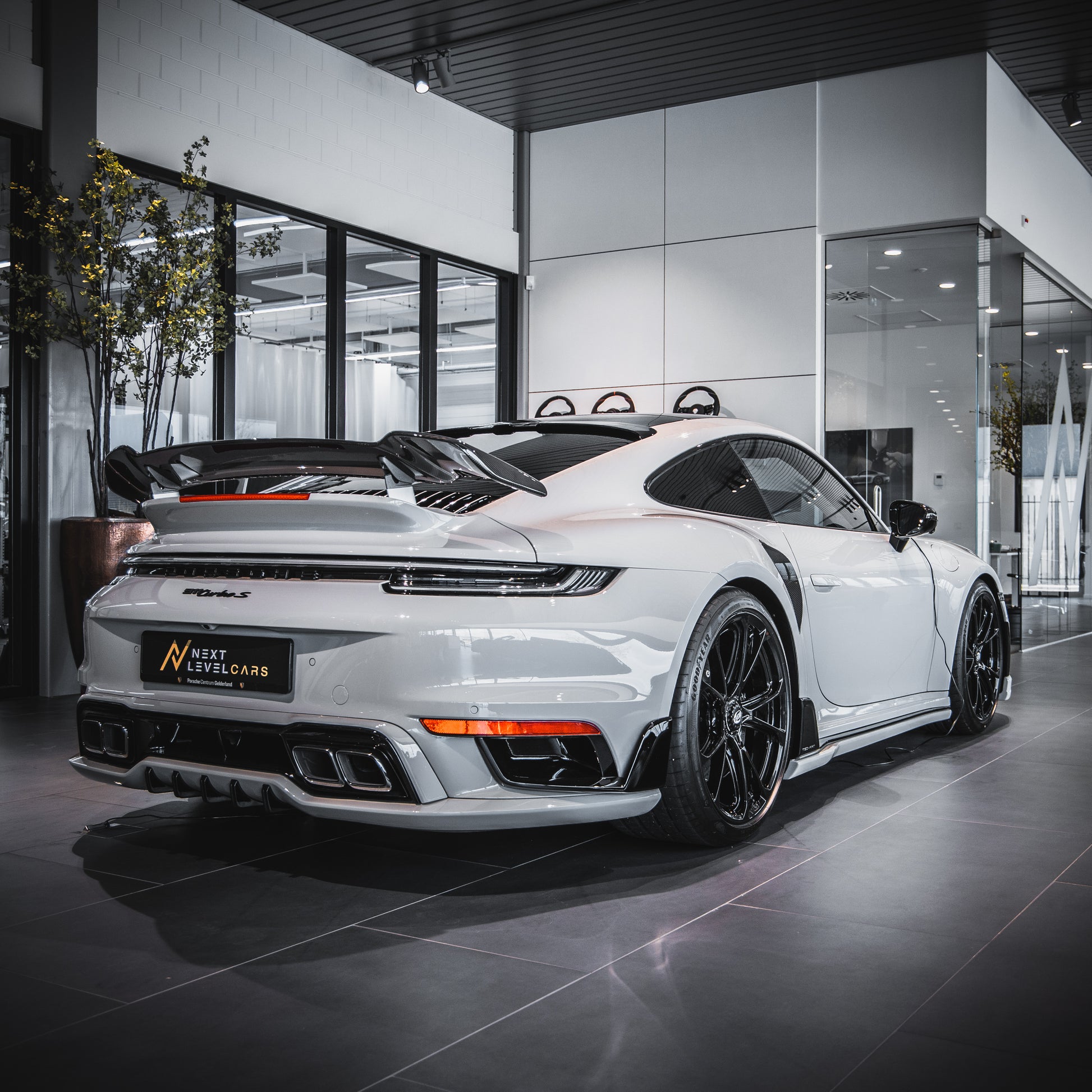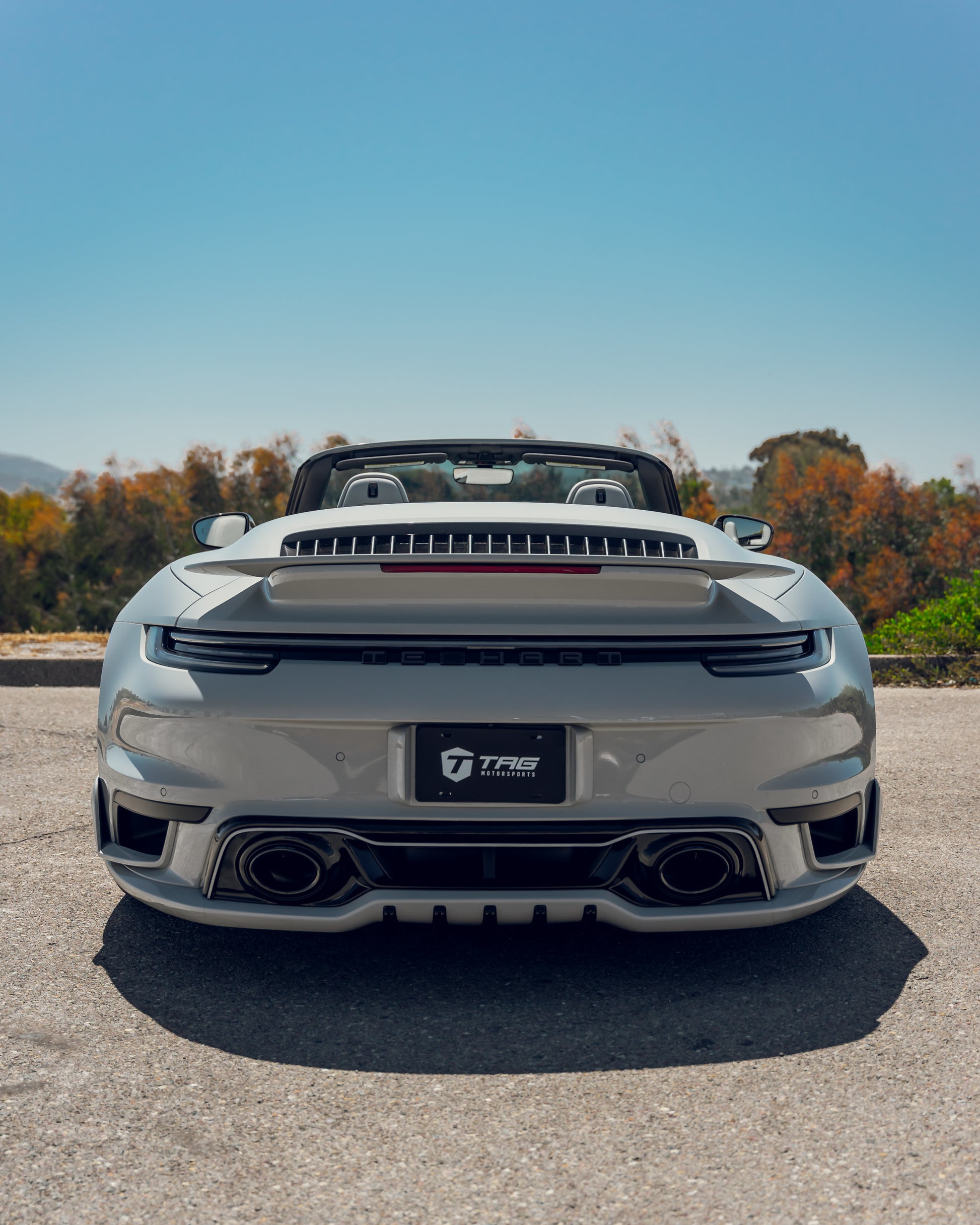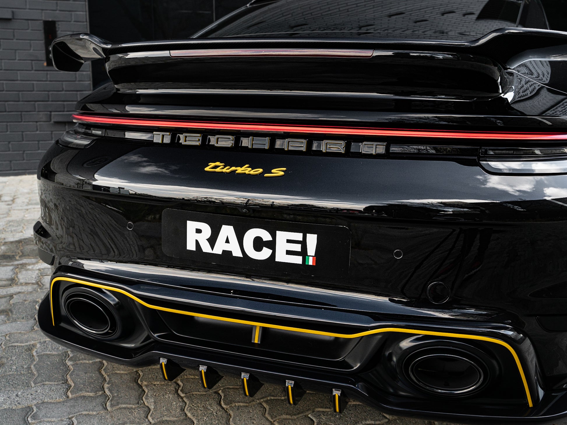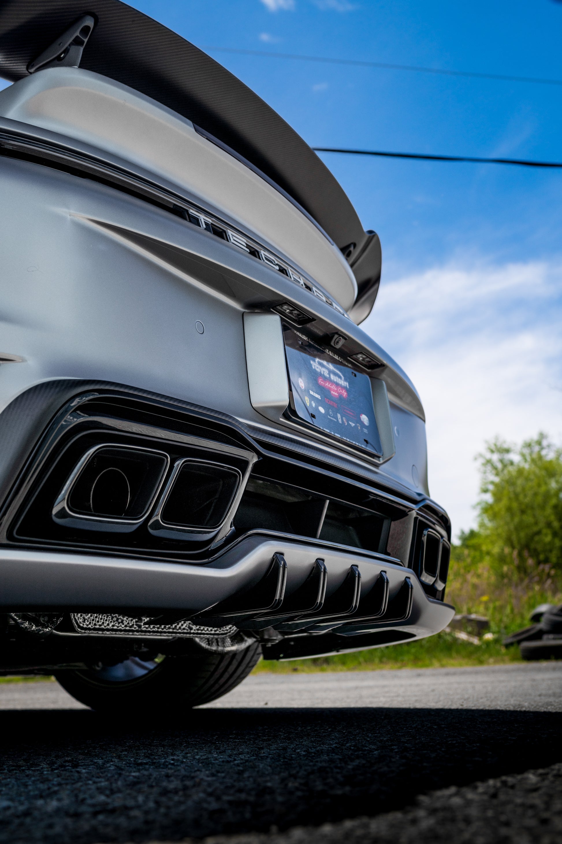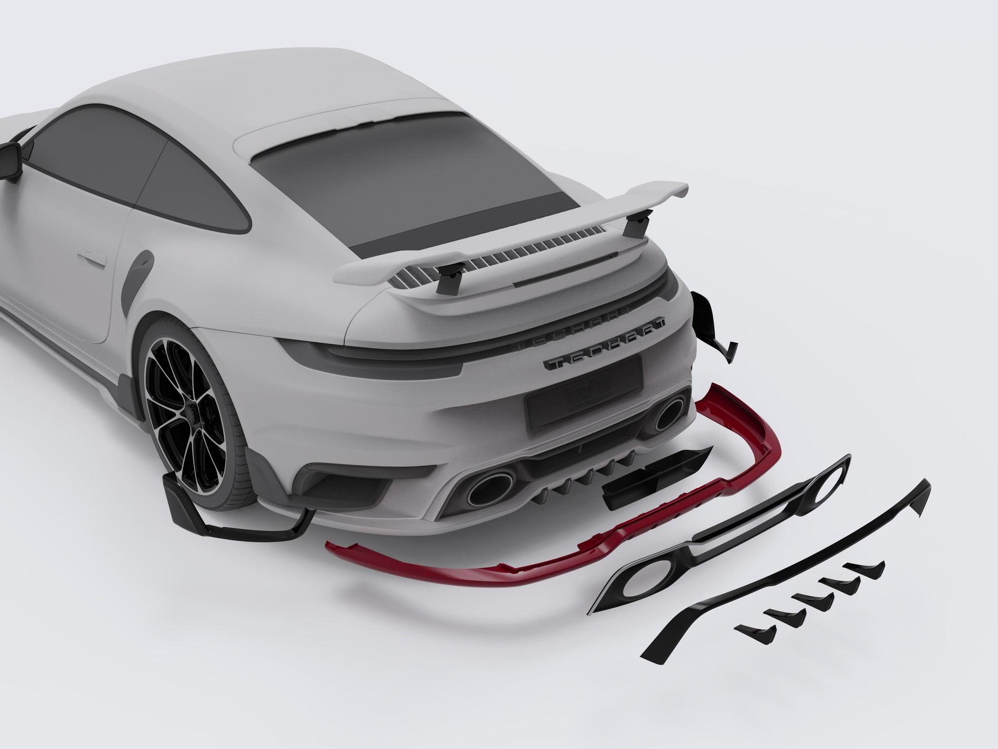 At the rear, a central diffusor element, air outlets with fins on both sides of the rear apron.