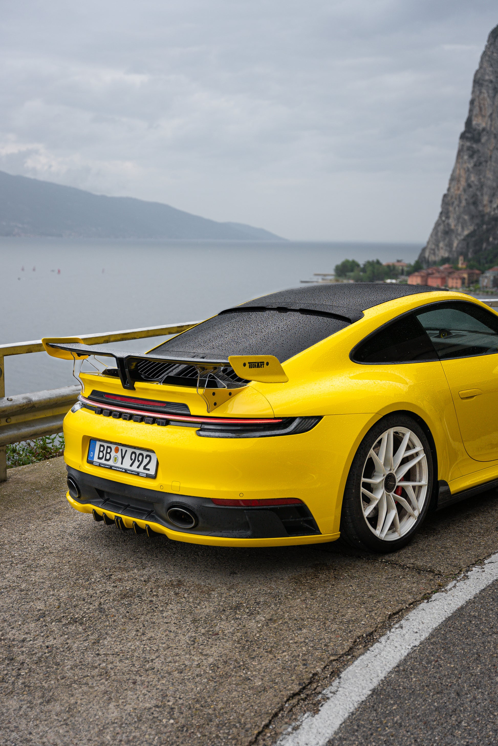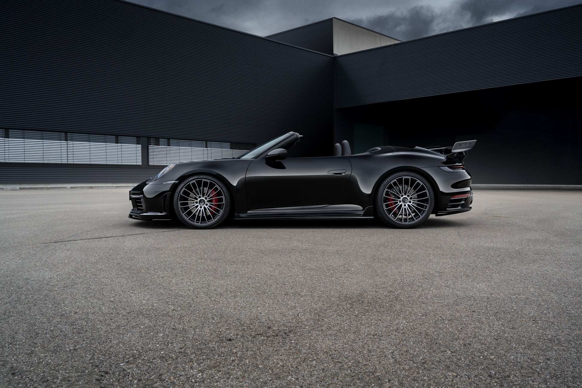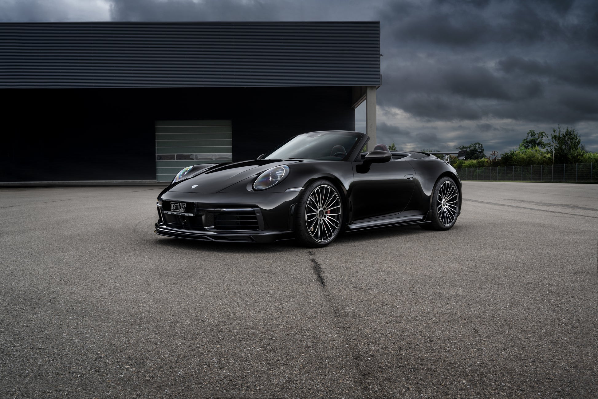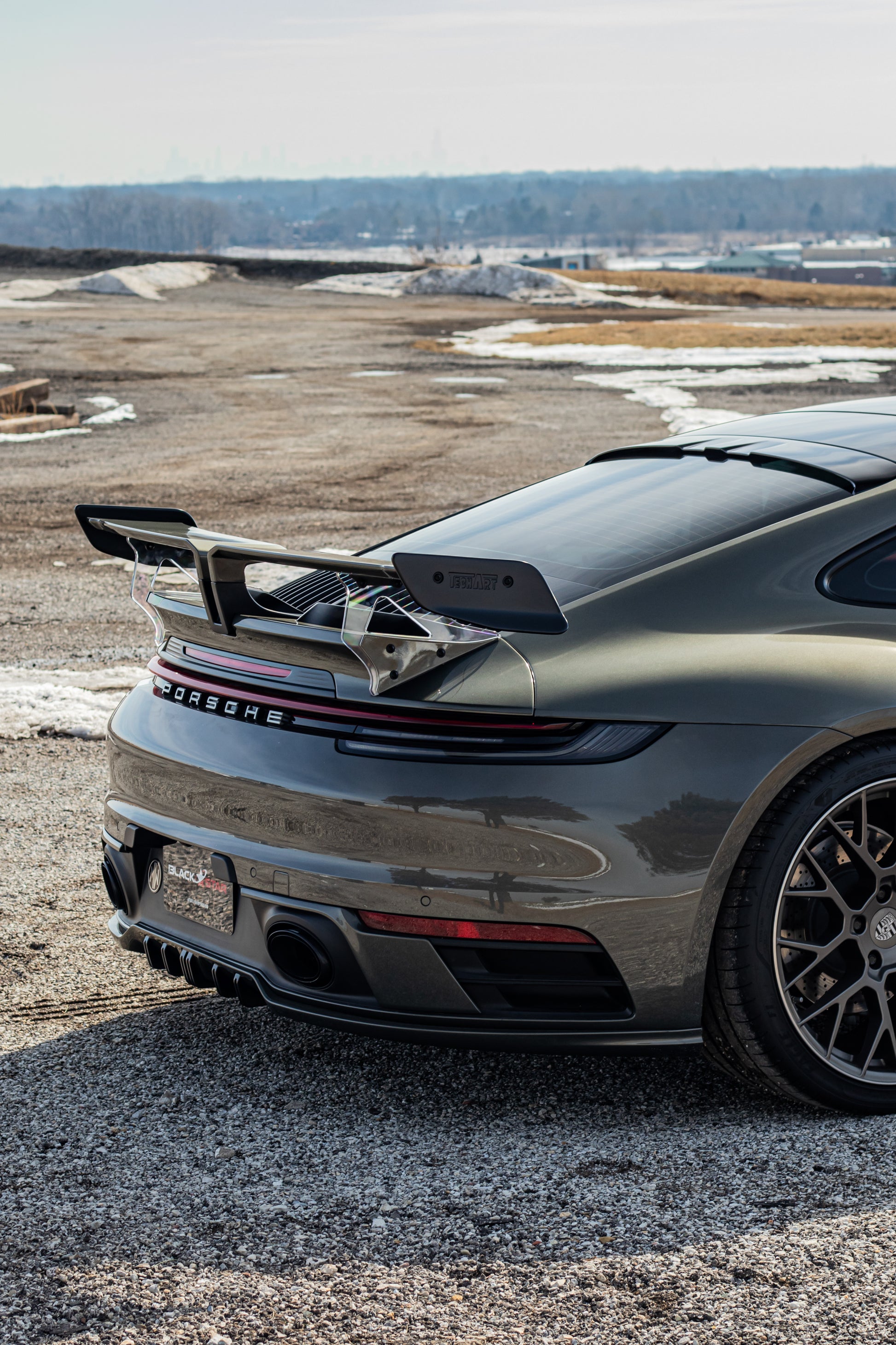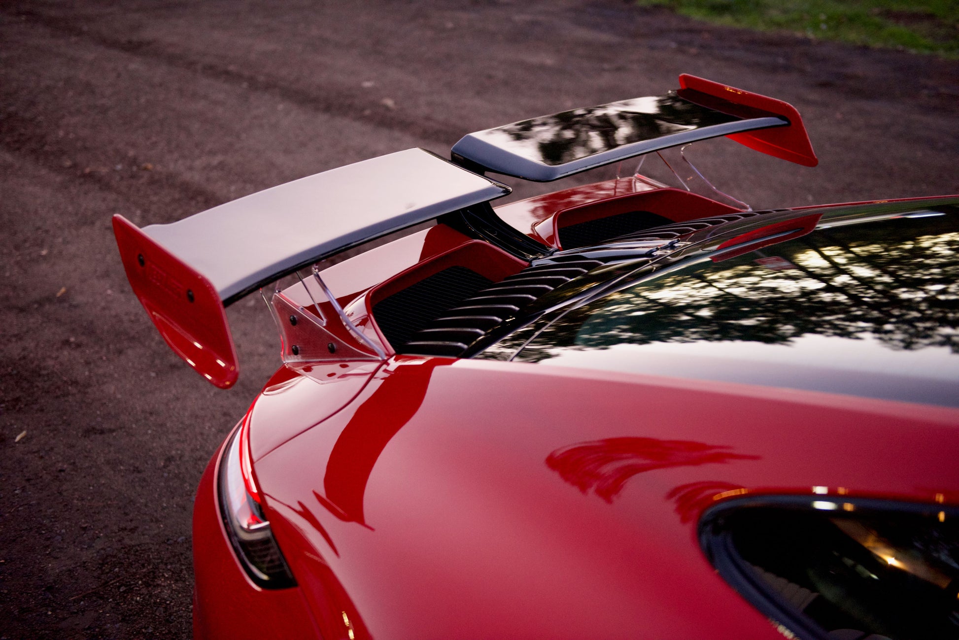 The transparent and high-tensile polycarbonate allows the rear wing to rest like a sculpture on the engine cover. This cover has also been redesigned for the new TECHART Rear Spoiler II. It incorporates two air intakes as well as an additional braking light.