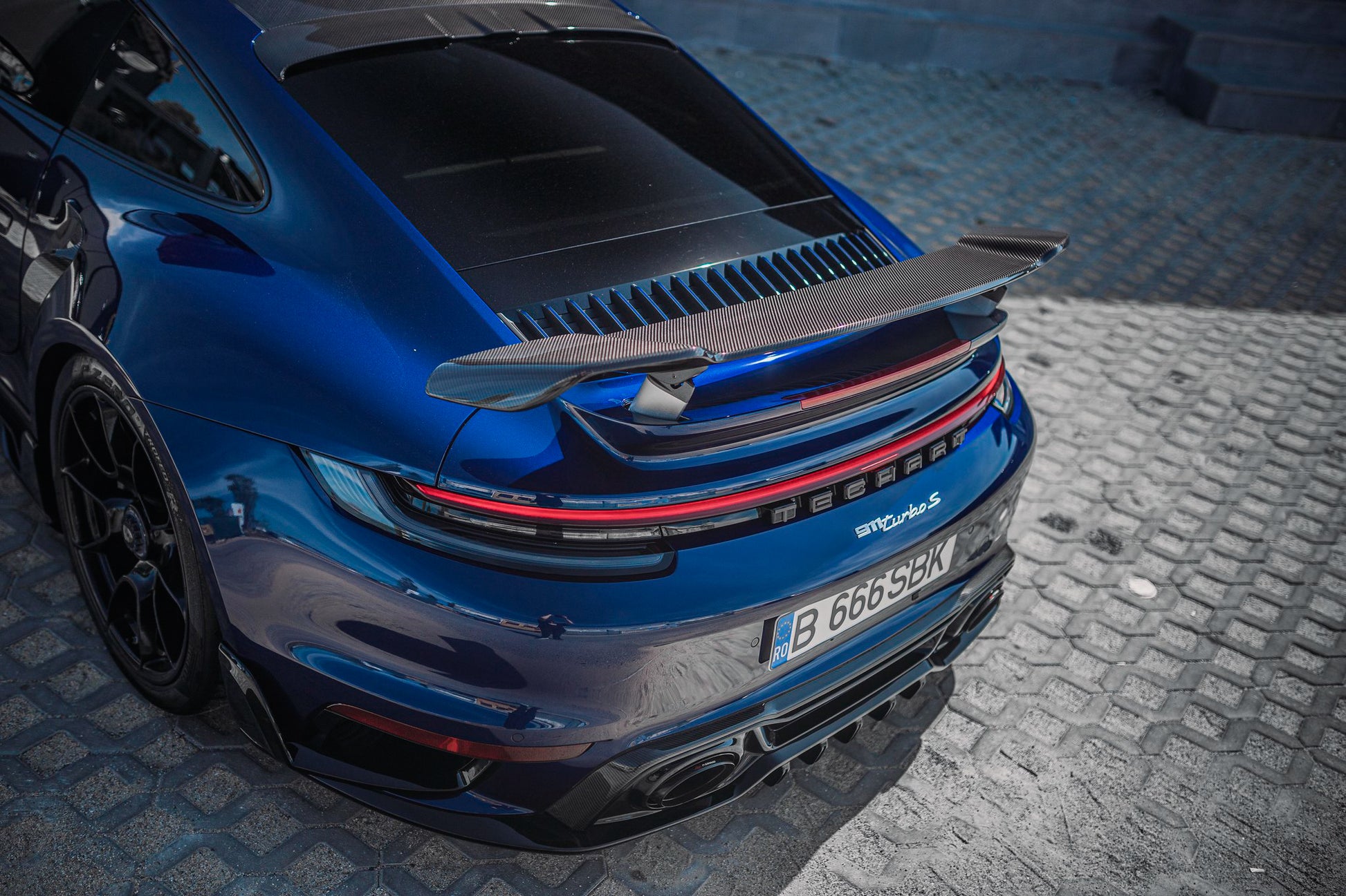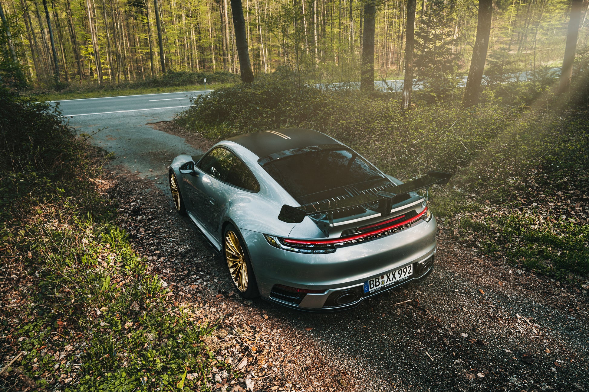 The profiled TECHART Roof Spoiler guides the airstream to one of the three different Spoiler variants that are at your choice.