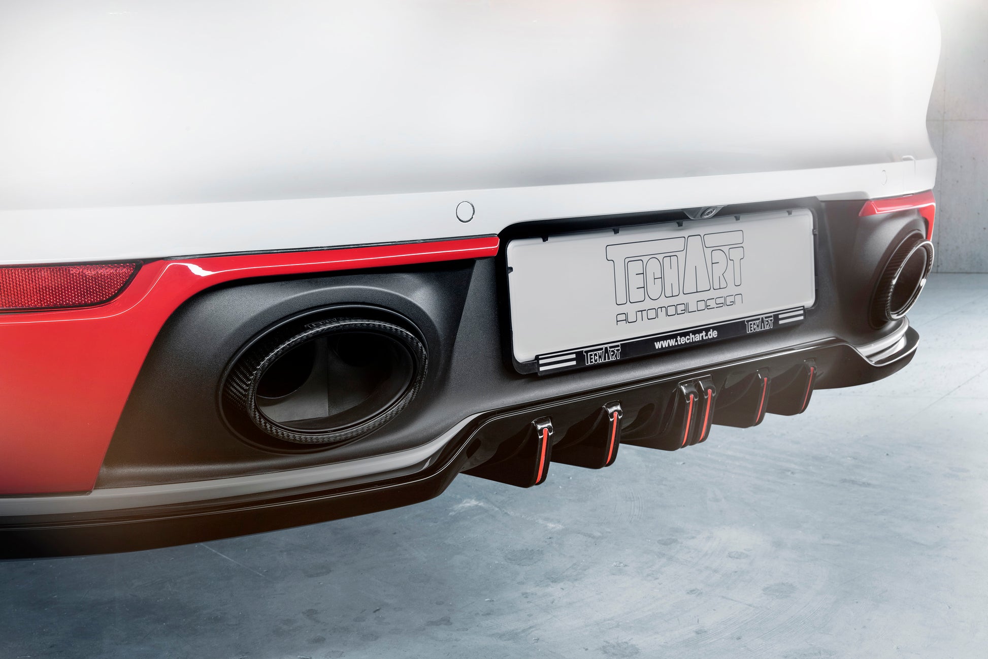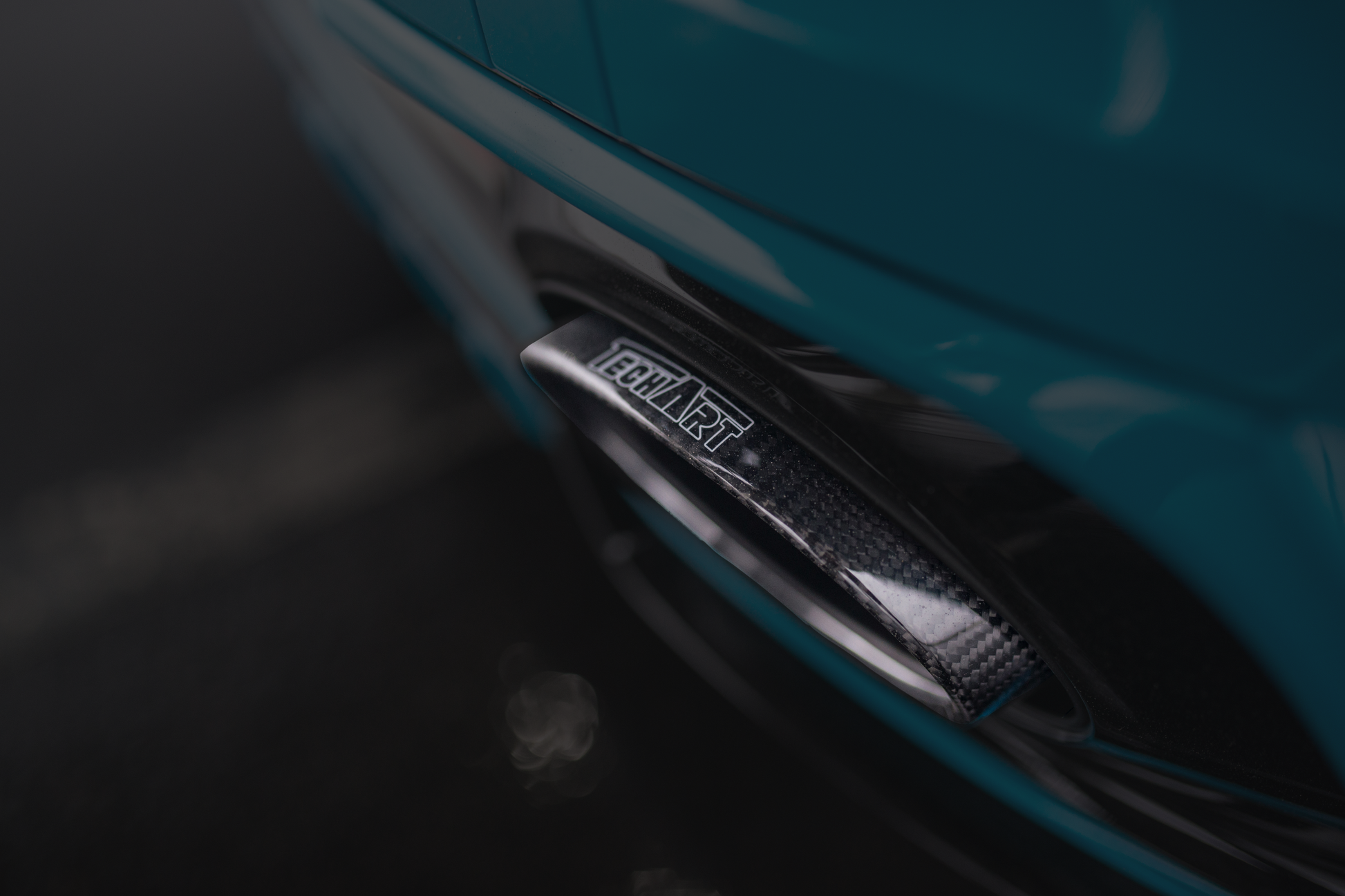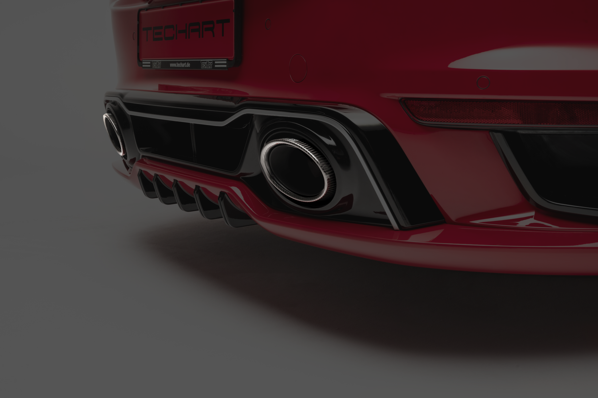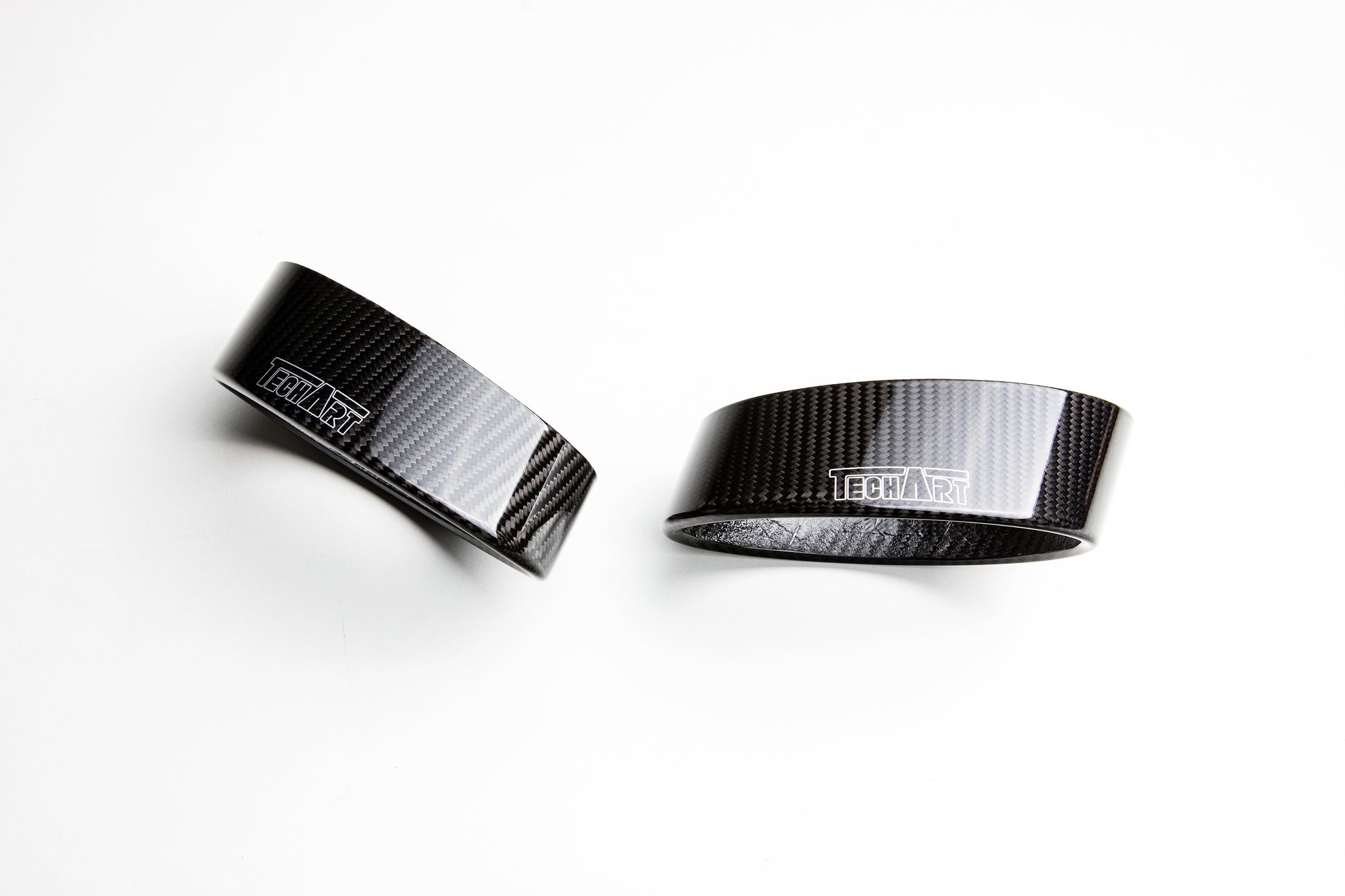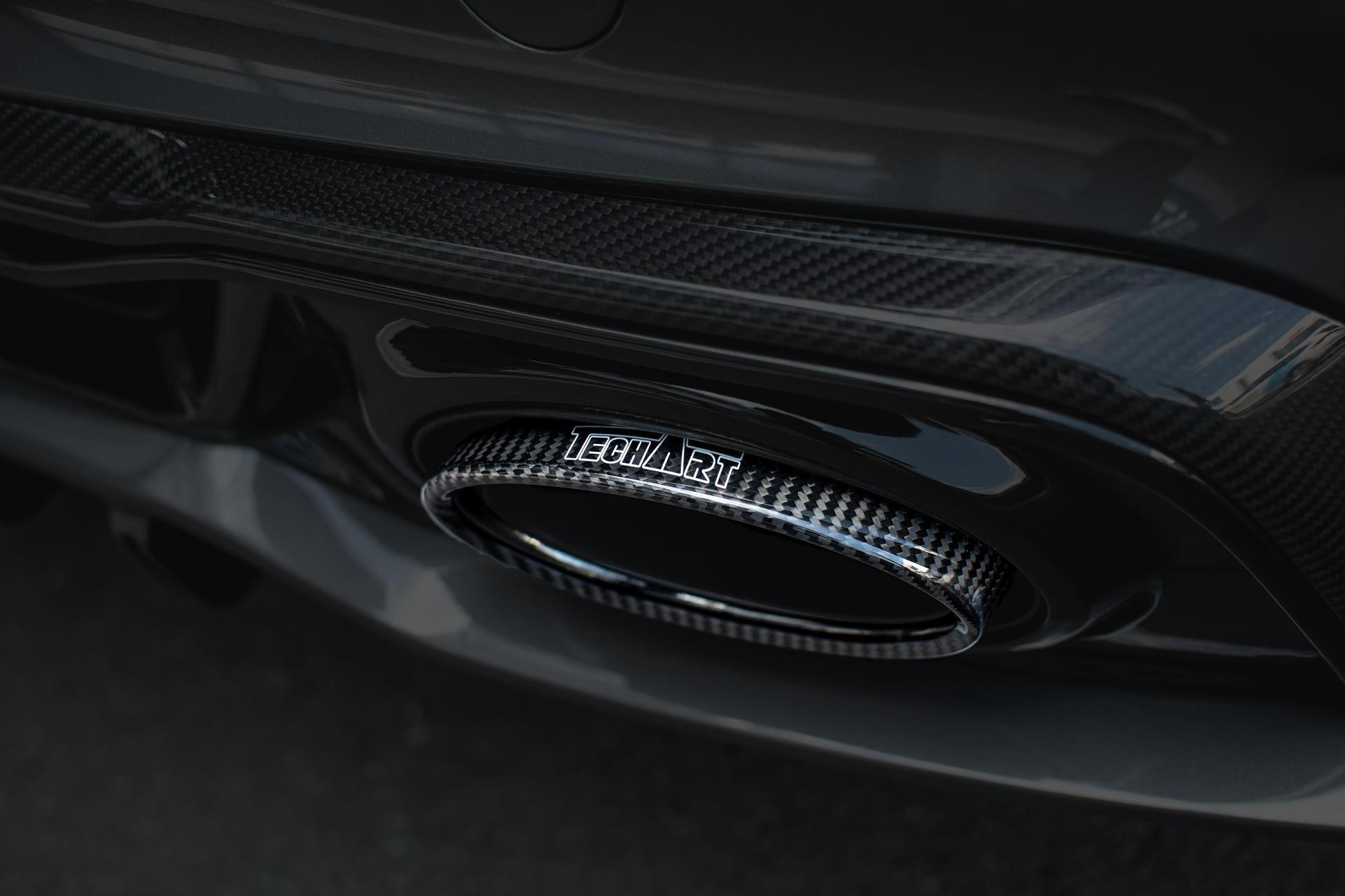 Pure sportiness, even at standstill: TECHART carbon exhaust tips, available in high gloss and matt finish. The trims fits the 911 in conjunction with both, the TECHART sports exhaust system as well as the Porsche sports exhaust system.